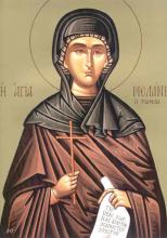 Η Οσία Μελάνη η Ρωμαία έζησε στα χρόνια πού βασιλιάς ήταν ο Ονώριος, δεύτερος γιος του Μεγάλου Θεοδοσίου. Οι γονείς της, ευγενείς και πλούσιοι, την πάντρεψαν σε μικρή ηλικία και απέκτησε δύο παιδιά.