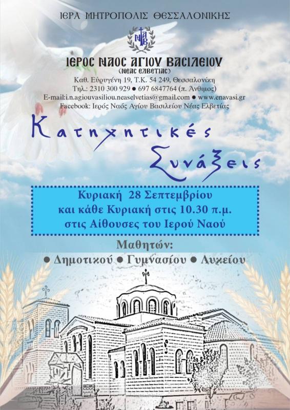 Έφτασε ξανά η ευλογημένη ώρα που ανοίγουν οι θύρες των κατηχητικών μας, την Κυριακή 28 Σεπτεμβρίου! Ο Χριστός μας καλεί: «Ἄφετε τὰ παιδία ἔρχεσθαι πρός με», και μαζί με την πρόσκληση μάς εμπιστεύεται το πιο πολύτιμο αγαθό, τις ψυχές των παιδιών μας.