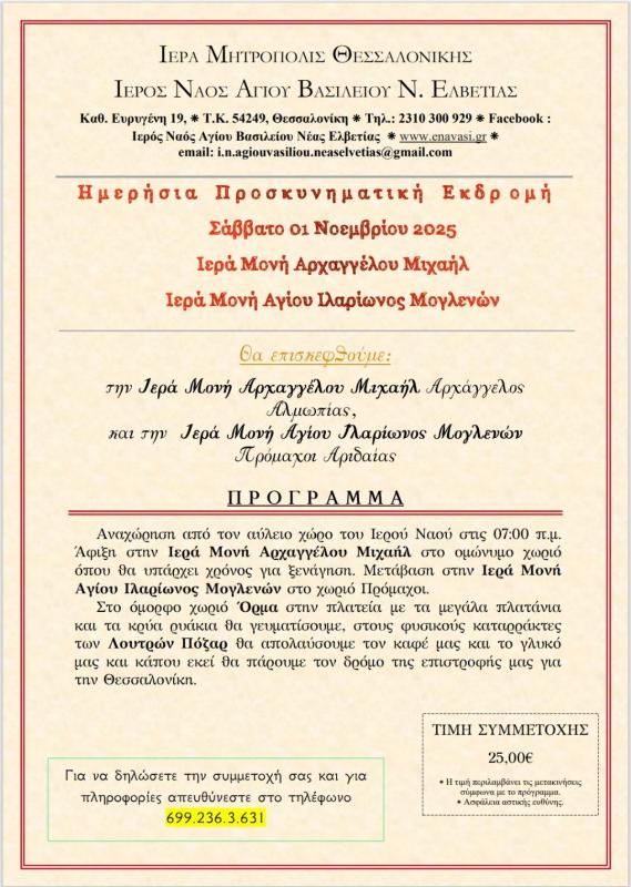 ΠΡΟΣΚΥΝΗΜΑΤΙΚΗ ΕΚΔΡΟΜΗ 01 ΝΟΕΜΒΡΙΟΥ 2025
